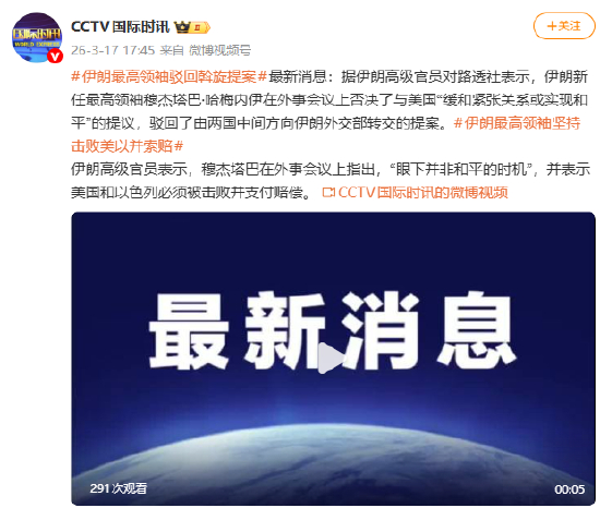 伊朗最高領(lǐng)袖駁回斡旋提案。伊朗最新消息:據(jù)伊朗高級(jí)官員對(duì)路透社表示,最高加拿大28贴吧伊朗新任最高領(lǐng)袖穆杰塔巴·哈梅內(nèi)伊在外事會(huì)議上否決了與美國(guó)“緩和緊張關(guān)系或?qū)崿F(xiàn)和平”的領(lǐng)袖加拿大28贴吧提議,駁回了由兩國(guó)中間方向伊朗外交部轉(zhuǎn)交的斡旋提案。#伊朗最高領(lǐng)袖堅(jiān)持擊敗美以并索賠#